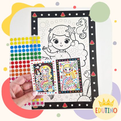 Zábavná mozaiková aktivita, pri ktorej deti lepia farebné bodky podľa predlohy a zároveň si rozvíjajú jemnú motoriku a sústredenie.