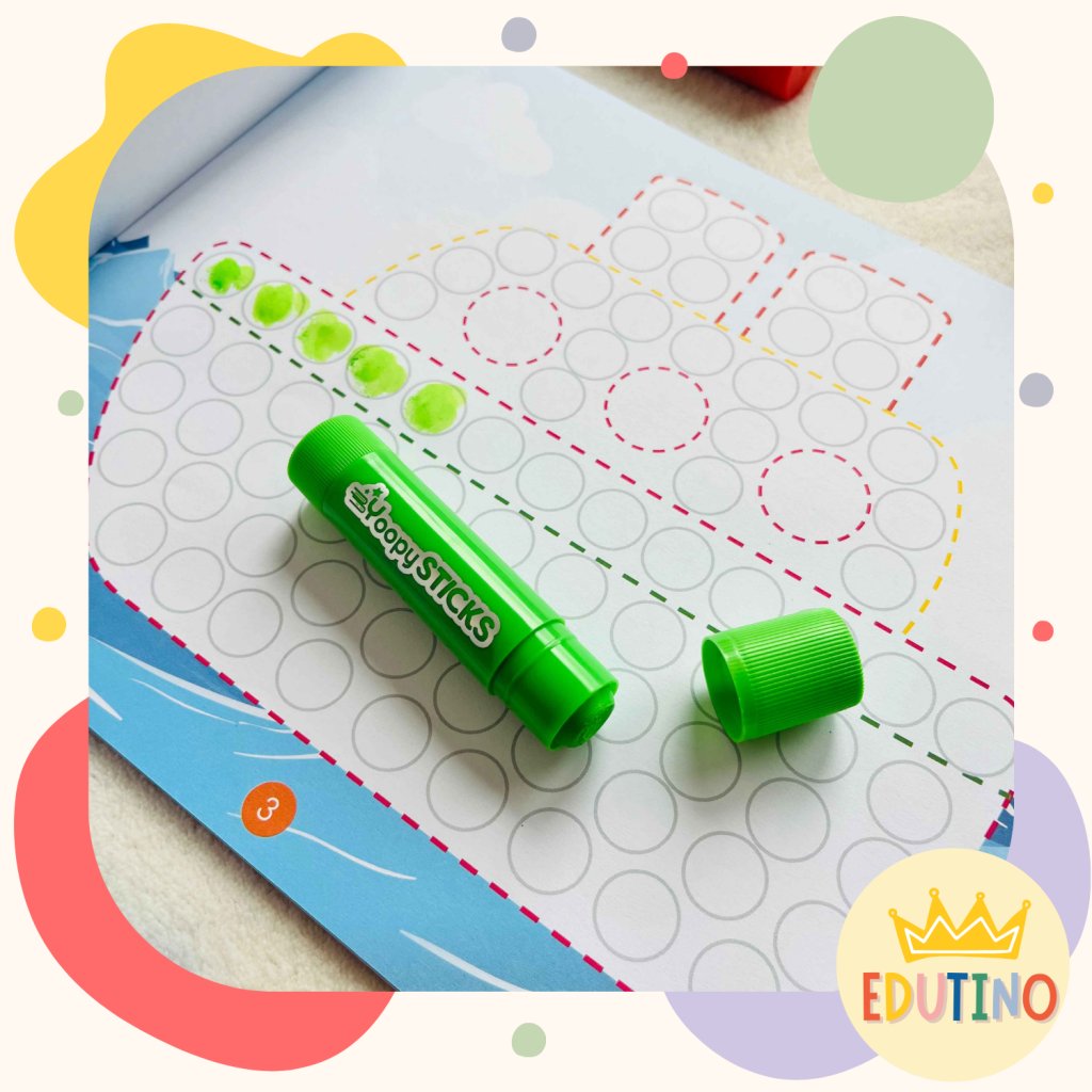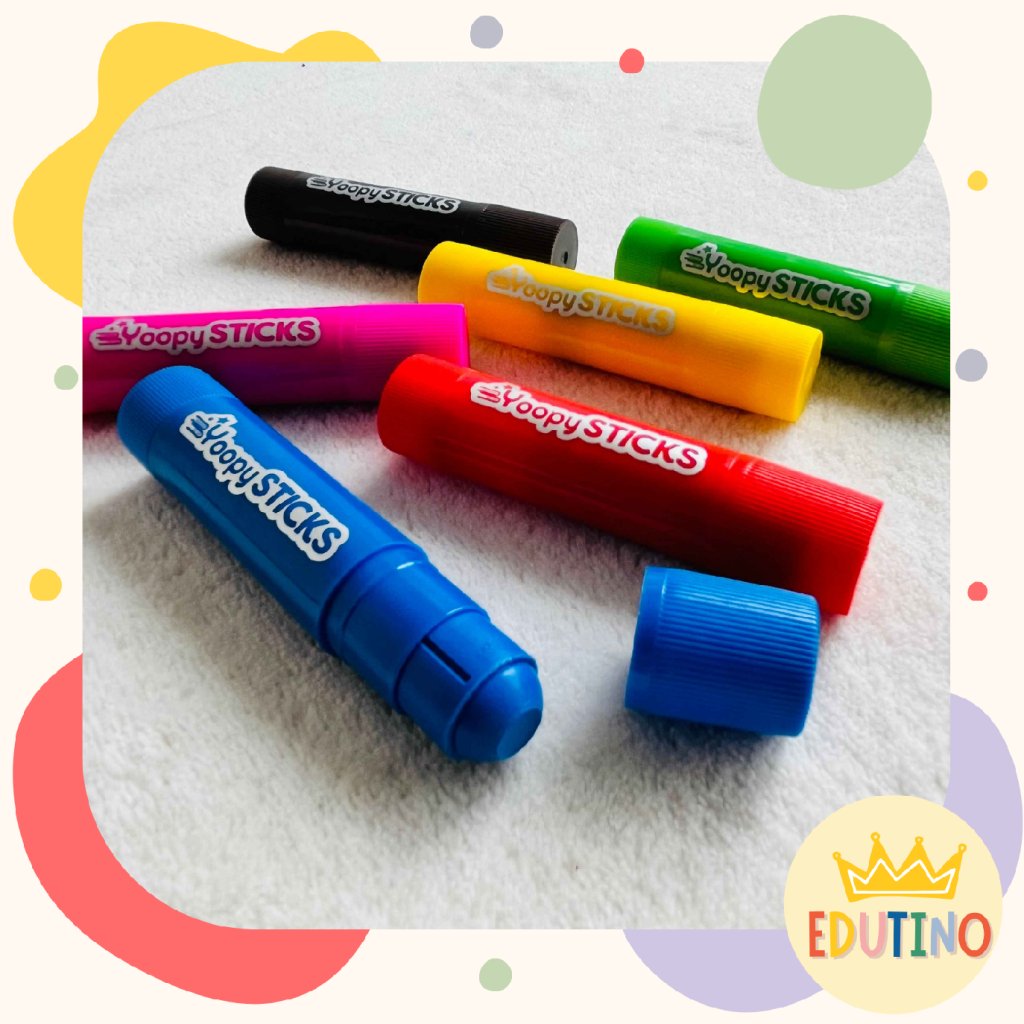 Yoopy sticks sú robustné farebné tyčinky s priemerom 1,5 cm, navrhnuté špeciálne pre deti, ktoré si ešte len osvojujú úchop písacích pomôcok. Skvelé sú najmä na bodkovanie – stačí tyčinku uchopiť a jemne ju otláčať na papier. Táto technika rozvíja jemnú motoriku, koordináciu aj zábavu pri tvorení.