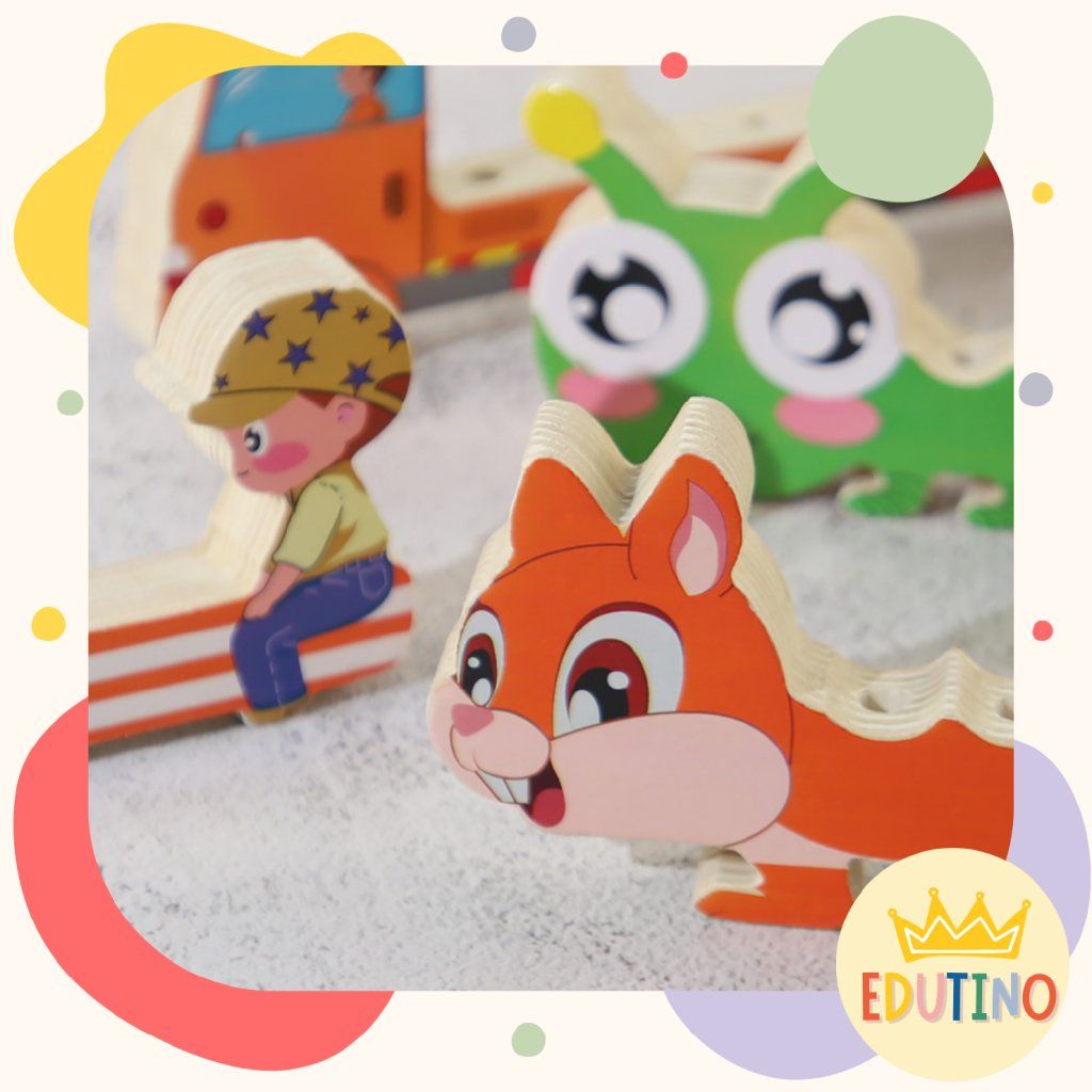 Vďaka manipulácii s drevenými dielikmi si deti prirodzene precvičujú prsty a pripravujú ruku na písanie.