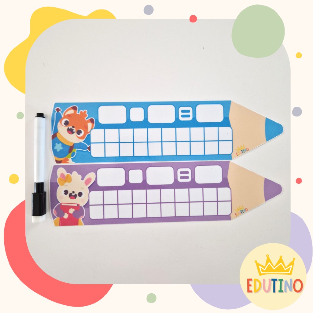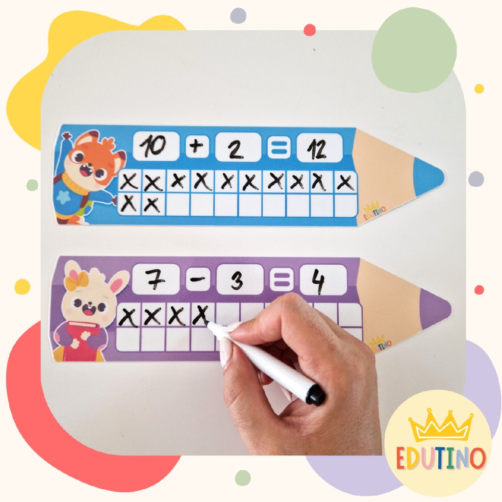 Zlepšite matematické schopnosti vášho dieťaťa s laminovanými kartičkami na sčítanie a odčítanie v tvare ceruzky. Obsahujú 20 sekcií na počítanie a stierateľný fix, čo robí učenie zábavným a interaktívnym pre predškolákov a mladších žiakov.