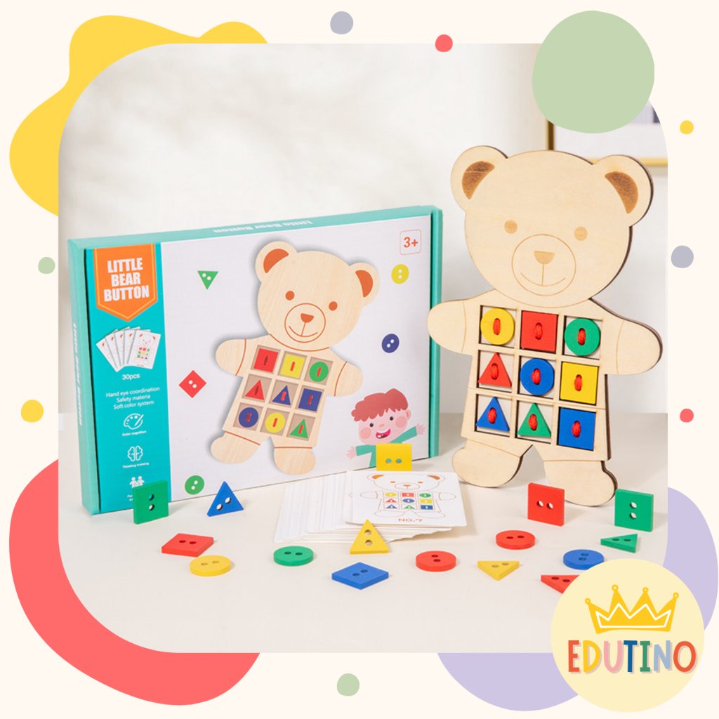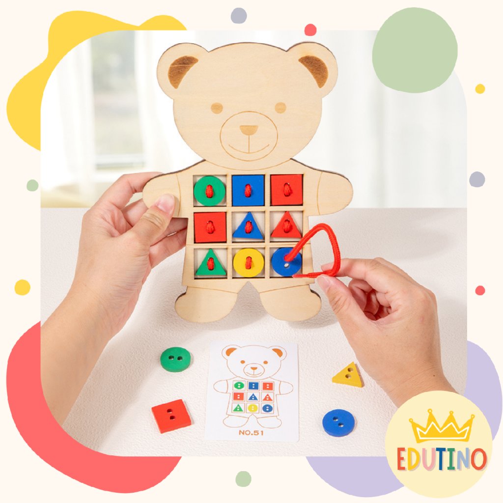 Podporte rozvoj jemnej motoriky hravou formou s Montessori hrou Medvedík – prevliekanie šnúrok 🧸