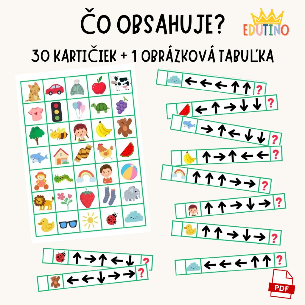 ✅ Hravé a logické – deti sledujú šípky a hľadajú obrázky