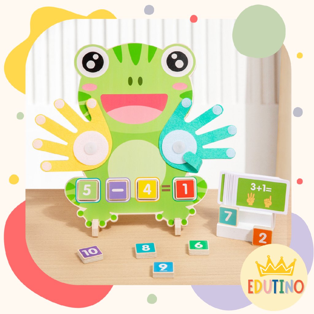 Zábavná matematická pomôcka so žabkou s prstíkmi pomáha deťom pochopiť počítanie do 10 hravou a názornou formou. Ideálna na prvé sčítanie, odčítanie a rozvoj jemnej motoriky.