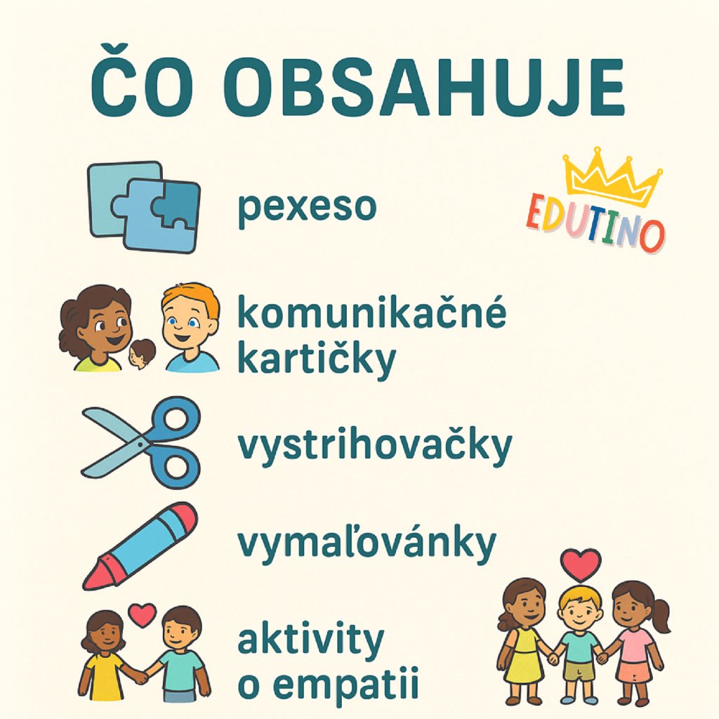 PDF súbor, ktorý učí deti, že aj keď sa líšime výzorom, sme si všetci rovní a zaslúžime si lásku a rešpekt. Obsahuje komunikačné kartičky, vymaľovánky, pexeso a ďalšie aktivity na podporu empatie a tolerancie, s celkovým počtom 35 strán.