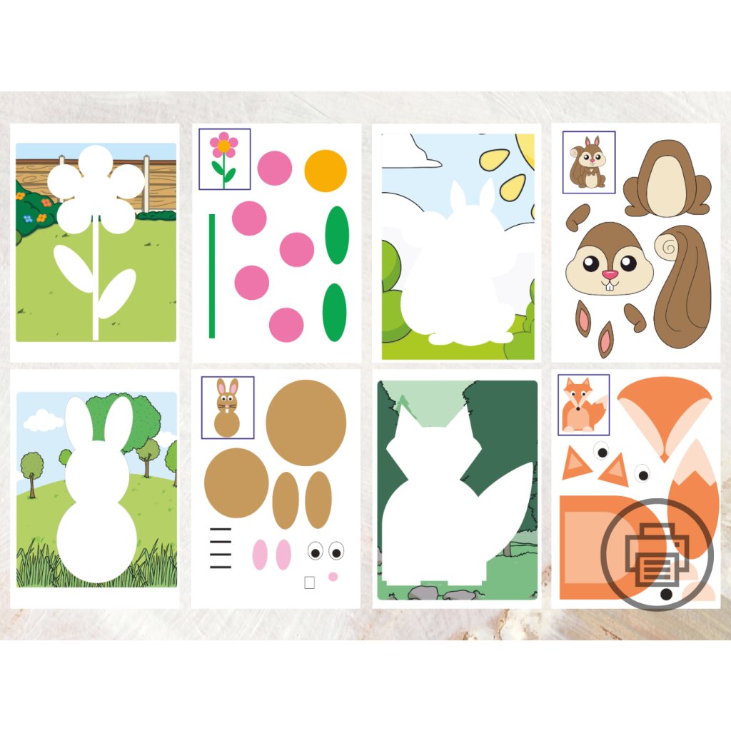 S touto PDF aktivitou si deti môžu rozvíjať zručnosti s nožnicami a lepidlom pri tvorení nádherných zvieratiek a kvetu podľa predlohy. Súbor obsahuje 24 zvieratiek a 1 kvet, ktoré čakajú na vystrihnutie a nalepenie, a po uhradení platby vám príde e-mail s odkazom na stiahnutie súboru.